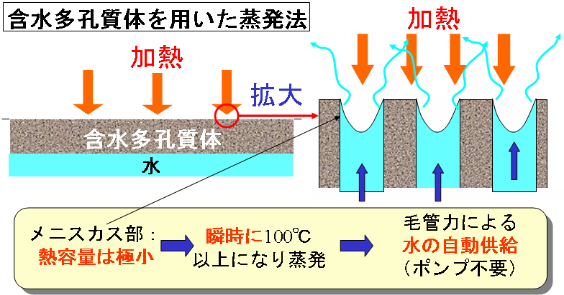 図11 含水多孔質体を用いた蒸気急速生成の原理