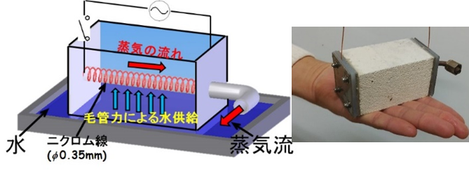 (わずか数秒で常温水から300℃以上の過熱水蒸気を生成)
