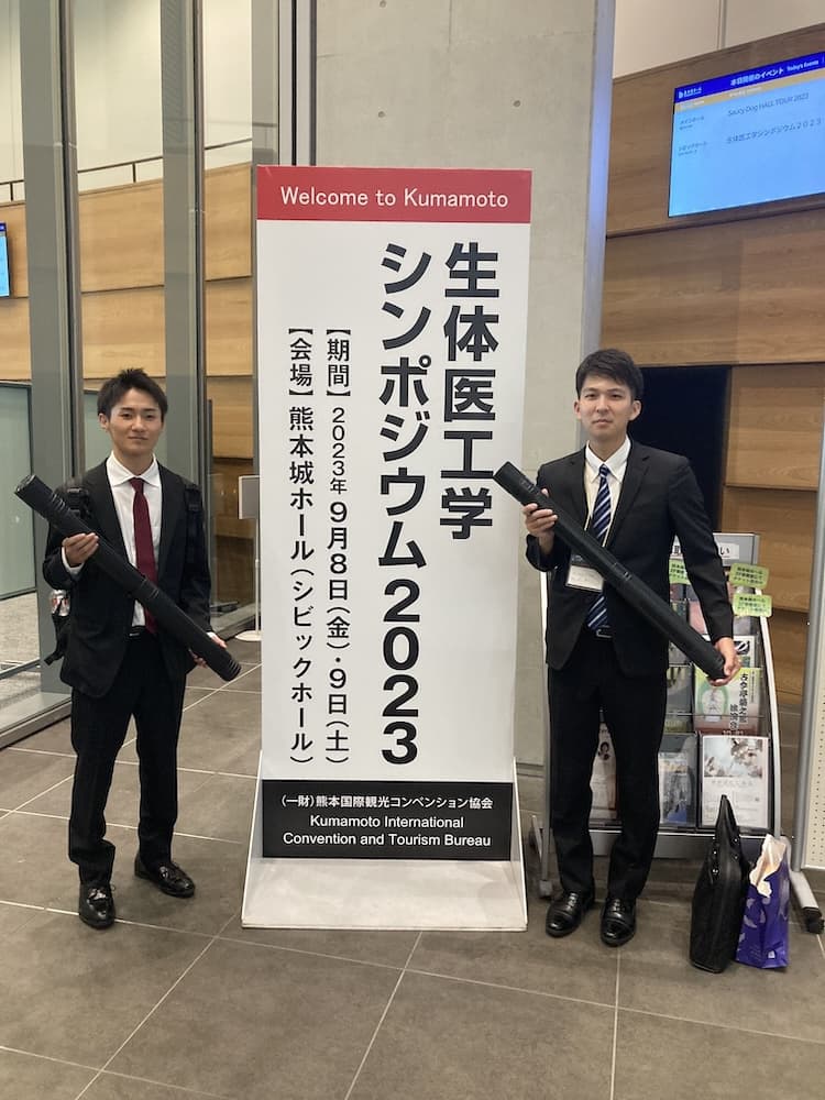 - 生体医工学シンポジウム2023(熊本)で,M1の船田さんが「金ナノ粒子が不可逆エレクトロポレーションによる細胞死に与える影響」,M1の木下さんが「高電界パルス印加による細胞膜透過性の変化」について研究発表を行いました.