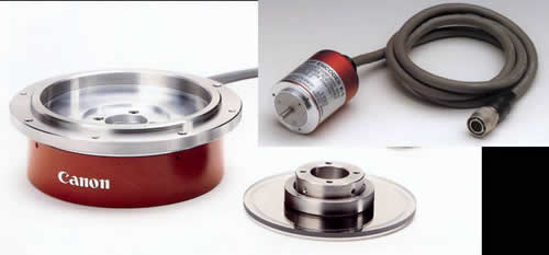 このエンコーダは,半導体レーザの回折・干渉などの光の波動性を利用した波動光学式エンコーダである.グレーティングディスクと検出器が分離しており,一般的な軸一体型のエンコーダに比べ,測定器の取り付け偏心を抑えることが可能である.また,検出器の対称位置に2つの検出部を設けてあるコモンパス方式のため,グレーティングディスクの取り付け偏心の影響が相殺される仕組みになっている.仕様は以下のとおりである.