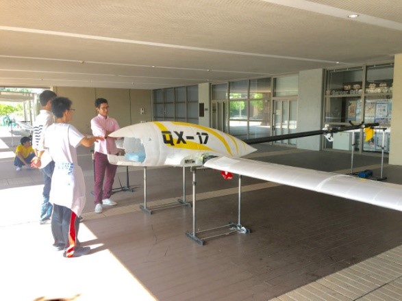 製作した機体の1/10サイズの模型や、実際に琵琶湖でフライトを行った機体を展示します。